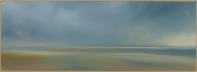 Gegen Abend gibt es eine Regenpause und der Strand bei Norddorf wird in eine Stimmung getaucht, in der die warmen Farben fließend ineinander überlaufen. Perfekt für meine Wischtechnik.